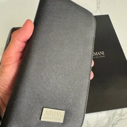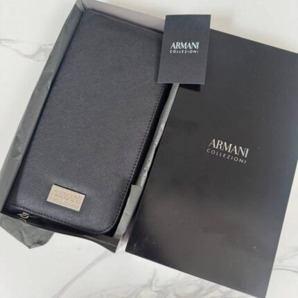 Armani Collezioni Zip Around Card holder Travel Wristlet Wallet with hidden handle in Black