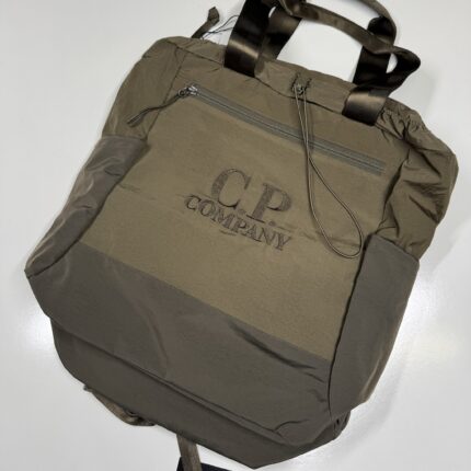 Large and versatile bag from C.P. Company in their nylon based Chrome-R material with tote straps and adjustable padded straps. The tote bag/backpack also features a large zipped main compartment with an inner zip sleeve, zipped front pocket, two side pouches with drawcord closure and a tonal C.P. Company logo embroidered on the front.
