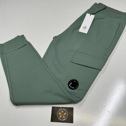 CP Company Diagonal Raised Fleece Lens Pocket Sweatpants in Dark Green.