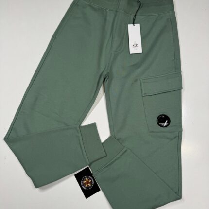 CP COMPANY 017A DIAGONAL RAISED FLEECE JOGGING PANTS IN GREEN