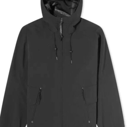 CP COMPANY 004A METROPOLIS SERIES METROSHELL HOODED JACKET IN BLACK.