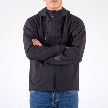 Soft shell from the Metropolis Series line with hood with adjustable drawstring, full zip closure and ribbed cuffs. This model also features side zip pockets, elasticated hem and laser engraved Metropolis Series badge. Unlike many naturally weather-resistant 3-layer fabrics, the Metroshell with which this garment is made offers an additional degree of protection thanks to the taped seams.