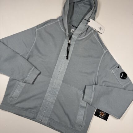 CP Company 039A Cotton Diagonal Fleece Hood Open Sweatshirt in Blue Large / p2p 24”