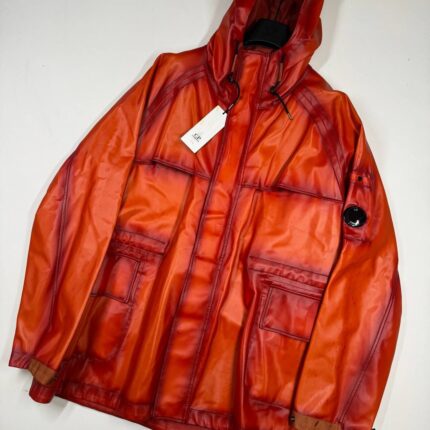 CP COMPANY 129A BI-FILM PARKA LENS JACKET IN PUMPKIN ORANGE