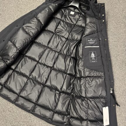 CP Company 252A Flatt Nylon Long down hooded jacket in Black