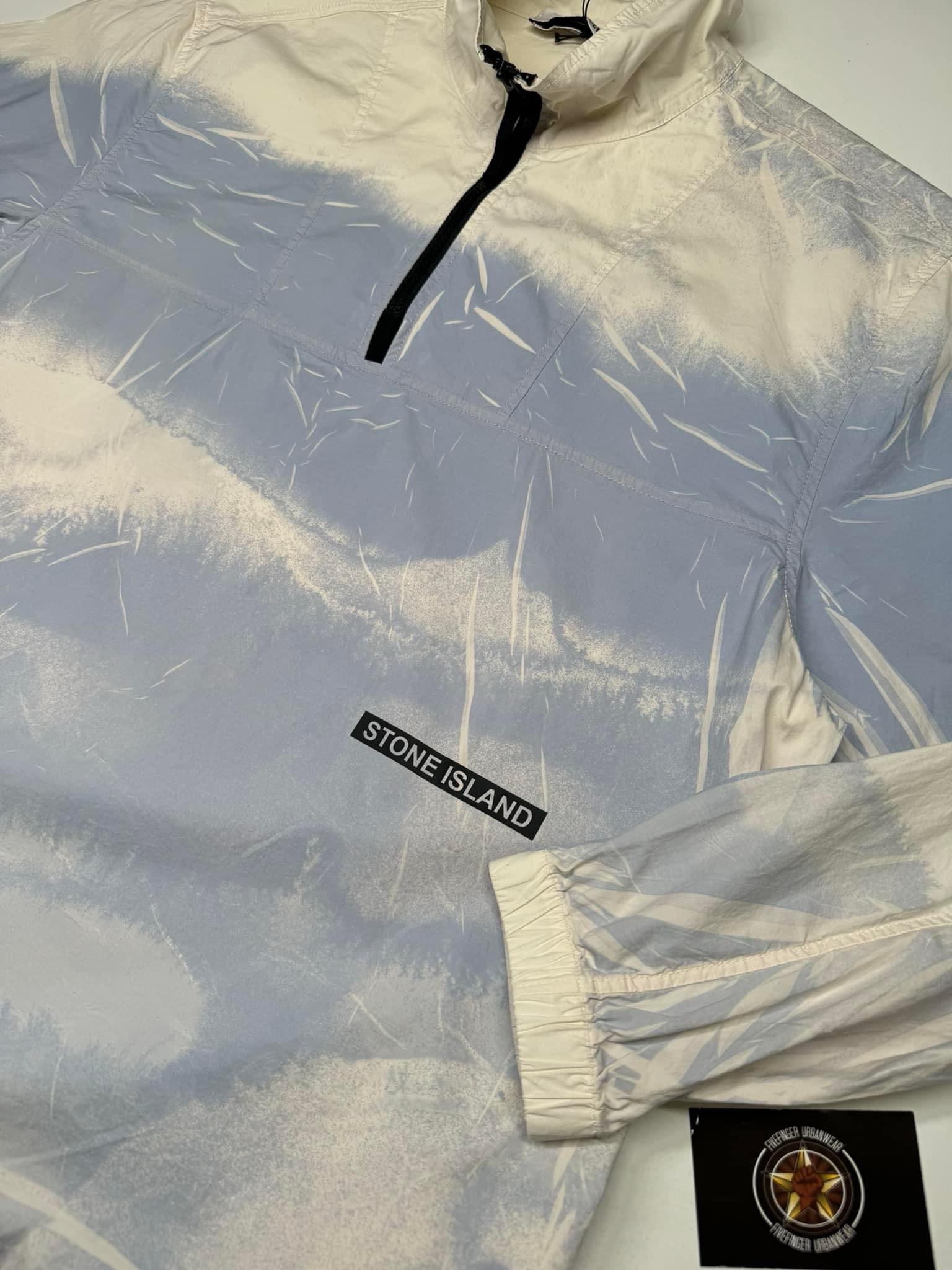 STONE ISLAND 11492 LIGHT REACTING ‘LUCE’ PRINT TECHNIQUE BLUE HALF ZIPPER OVERSHIRT