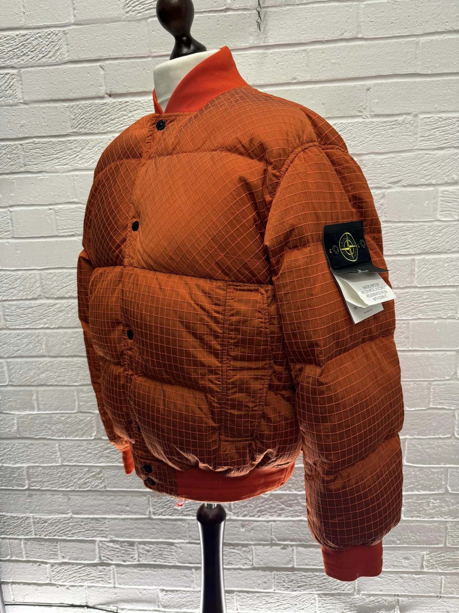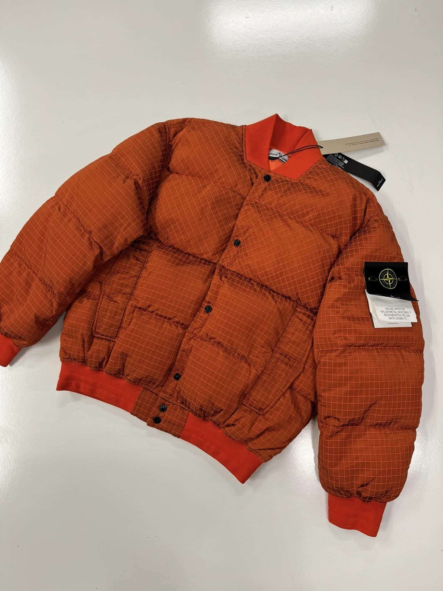 STONE ISLAND 43232 MACRO RIPSTOP NYLON METAL IN ECONYL REGENERATED NYLON DOWN-TC BOMBER DOWN JACKET R- Lobster Red – Large / p2p 24”