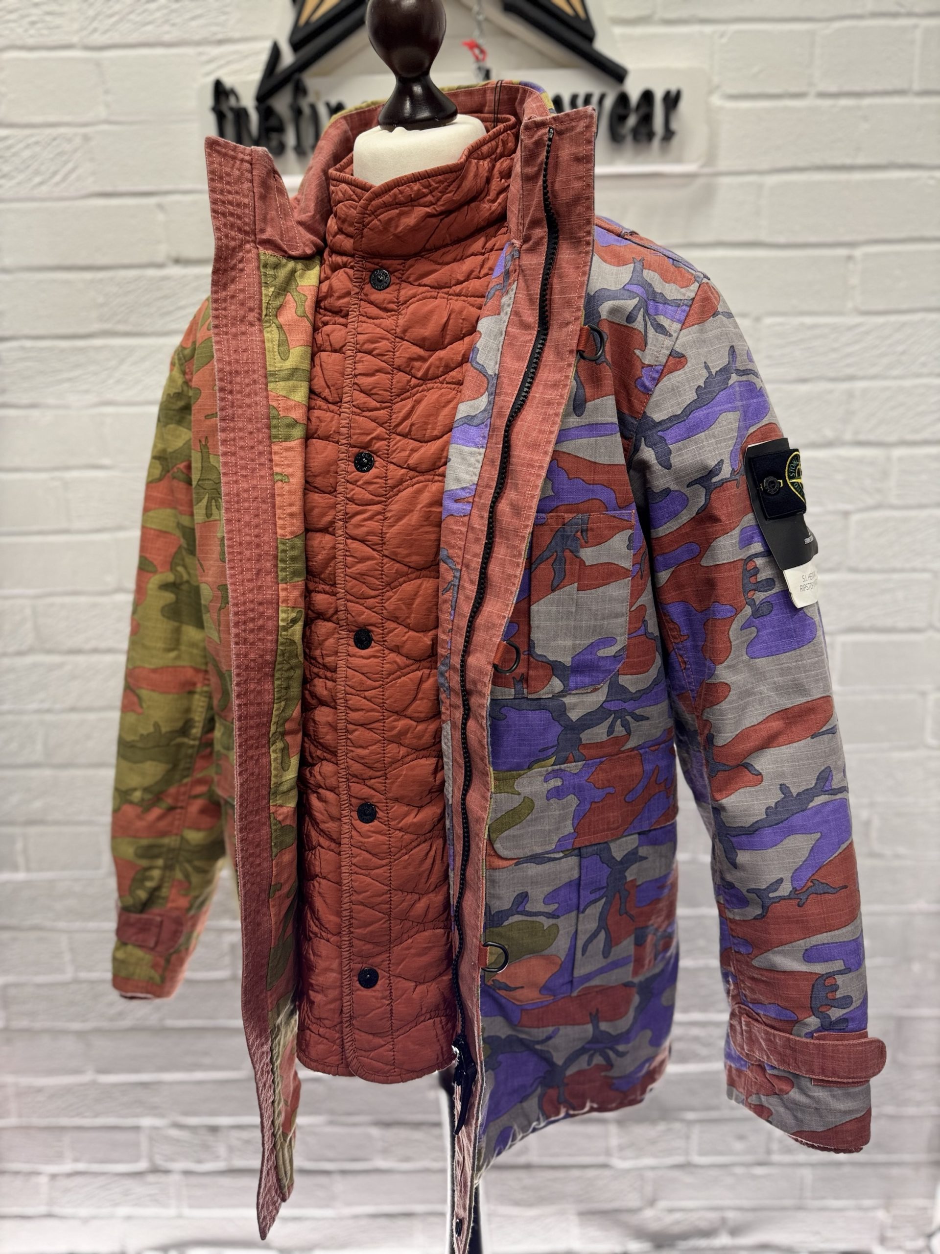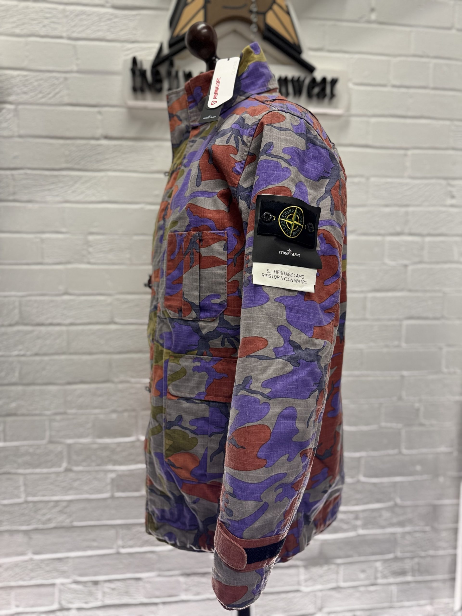 STONE ISLAND 442E1 FIELD JACKET S.I. HERITAGE CAMO RIPSTOP NYLON WATRO_DETACHABLE LINING IN NYLON METAL IN ECONYL® REGENERATED. Large / P2P 24”