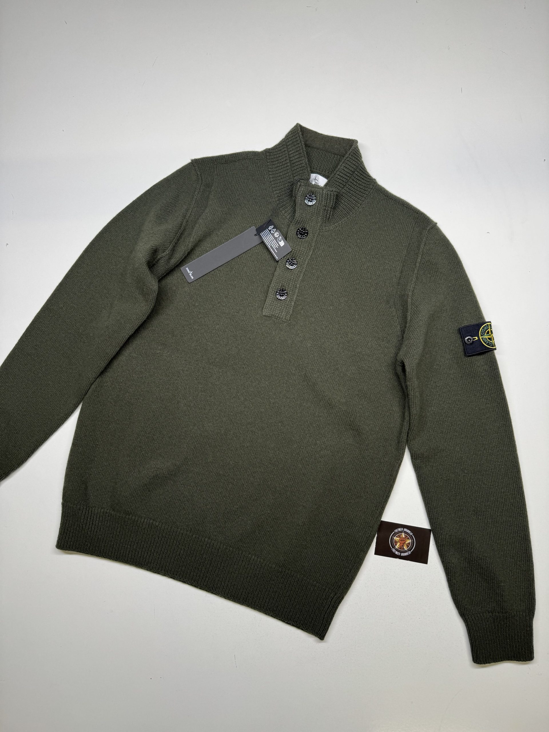 STONE ISLAND 540A3 Lambswool Half Zip Sweater with Buttons in Green – XL / P2P 23”