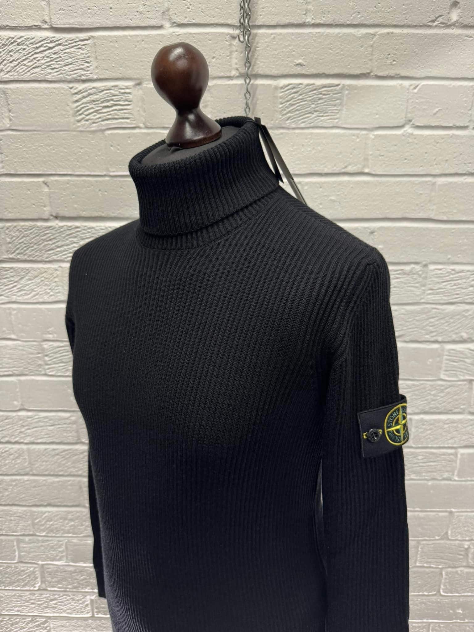 STONE ISLAND 552C2 wool ribbed turtleneck in Black – SMALL /. 19” p2p