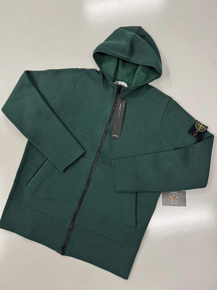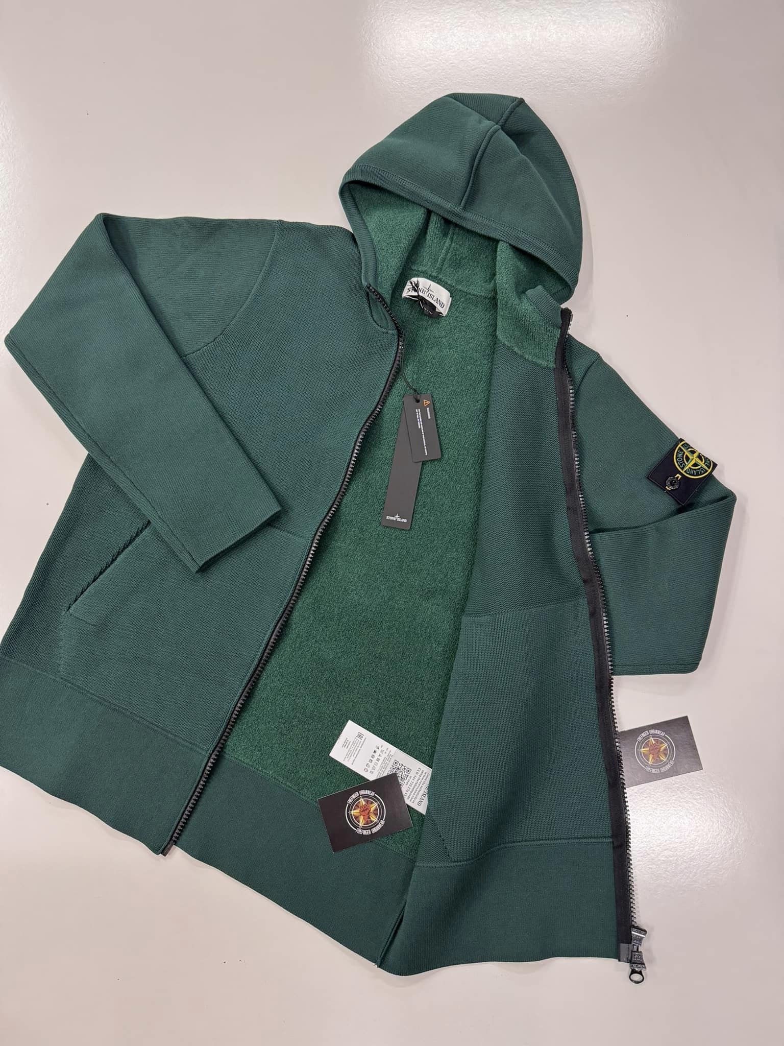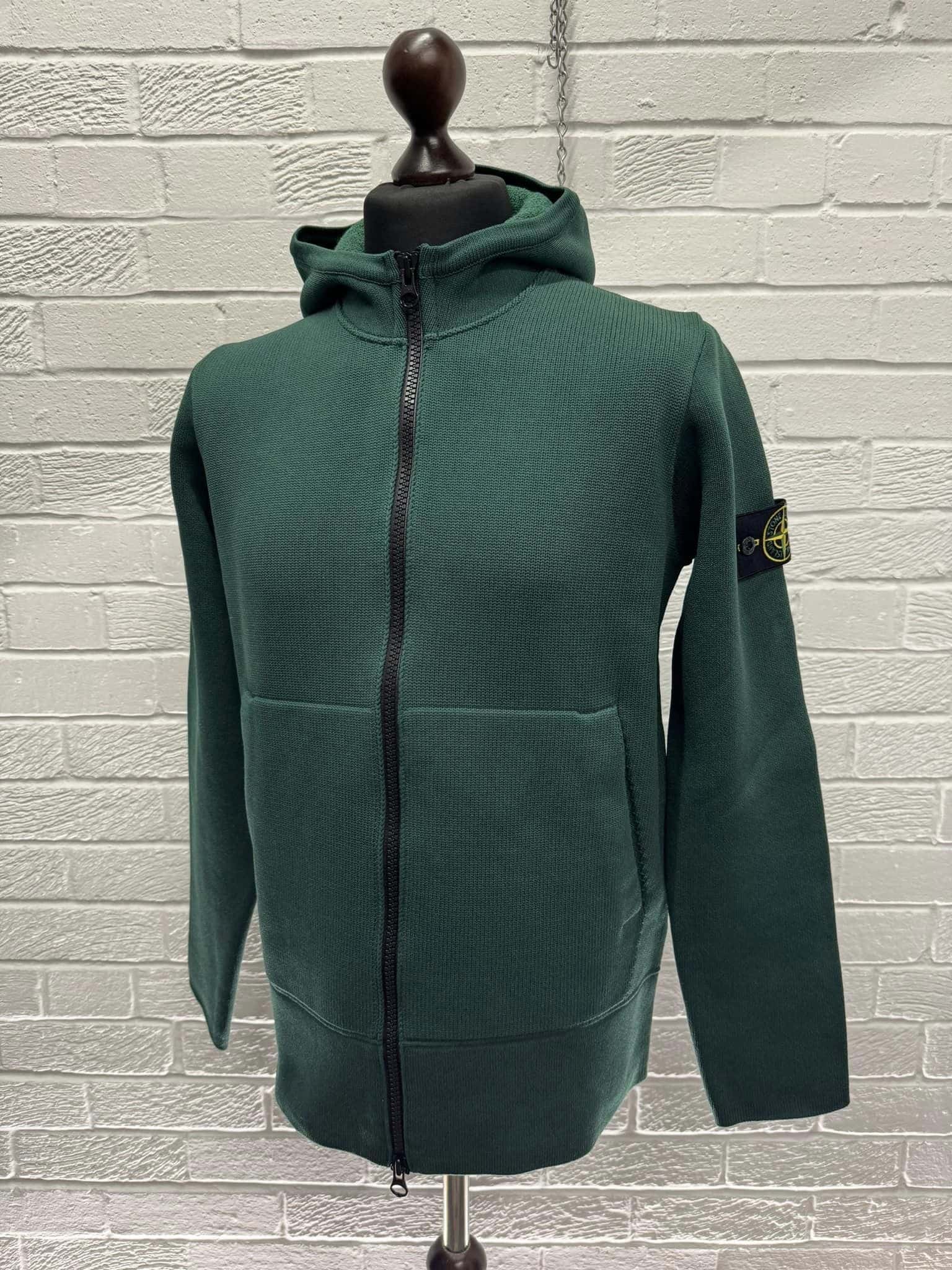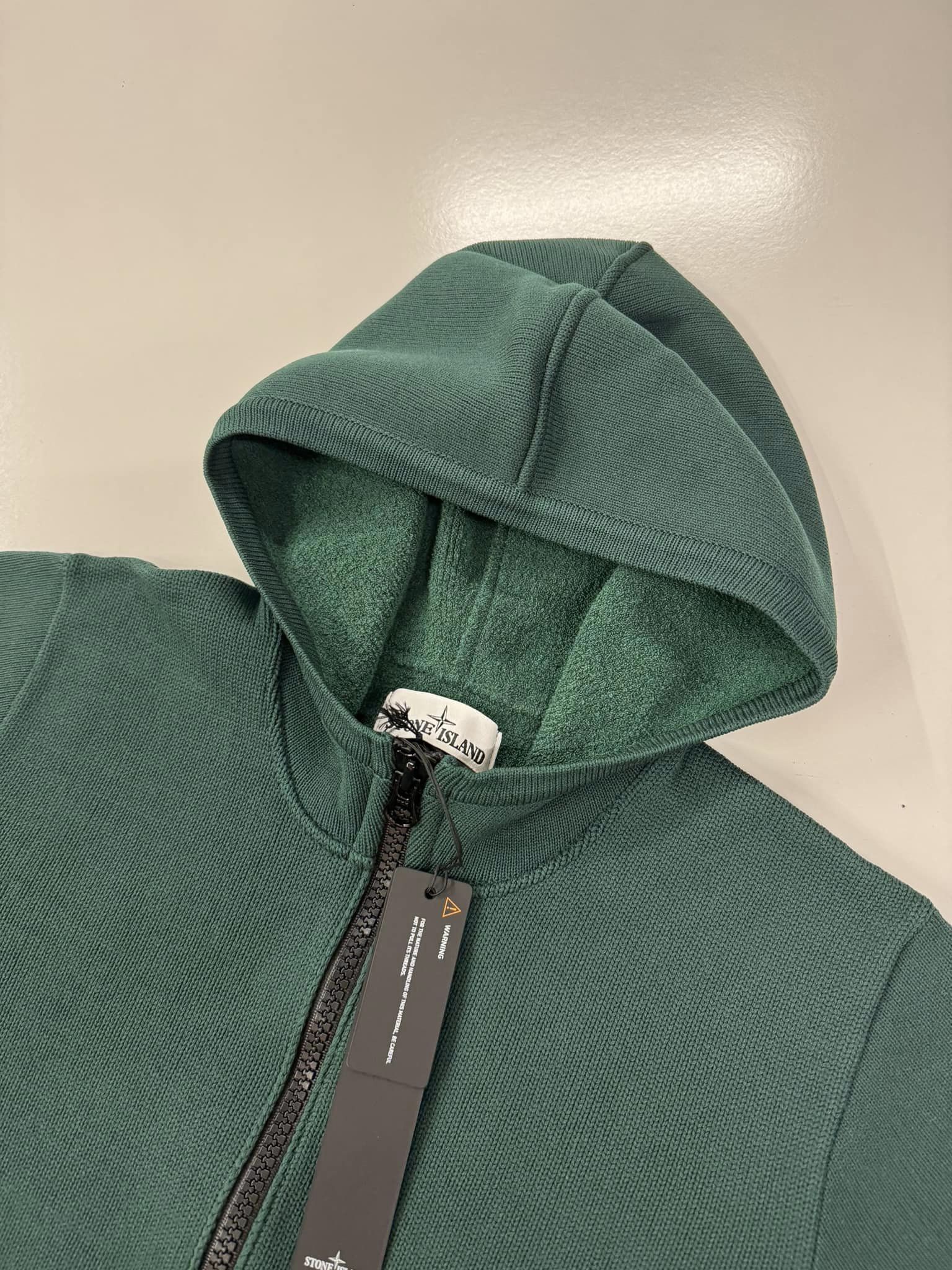 Stone Island 556B3 Hooded cardigan knit in double face knit in green – Large / p2p 22”
