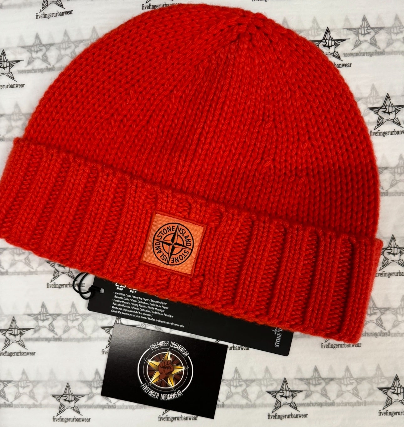 Stone Island N17D6 Beanie in Geelong Wool In Lobster Red